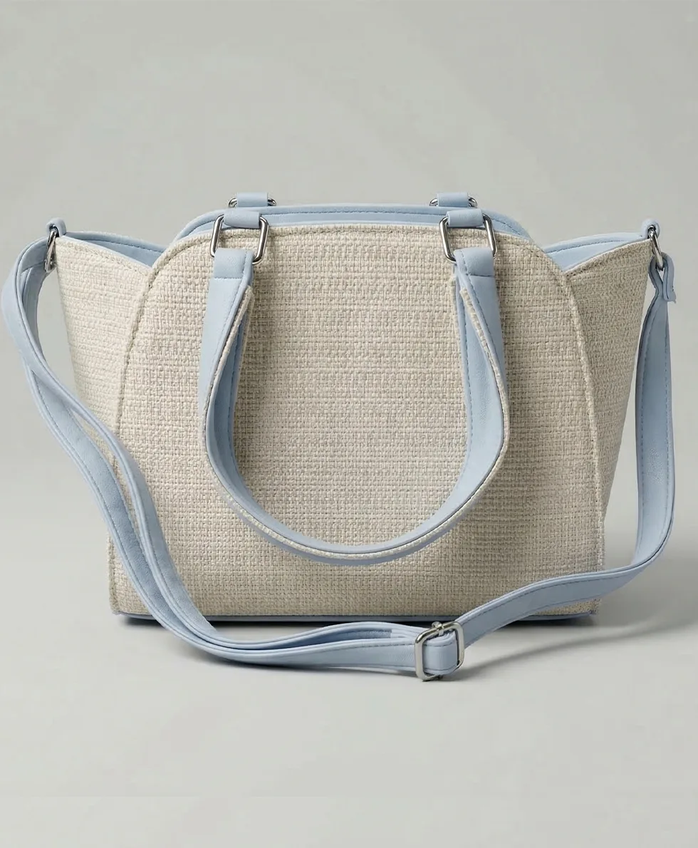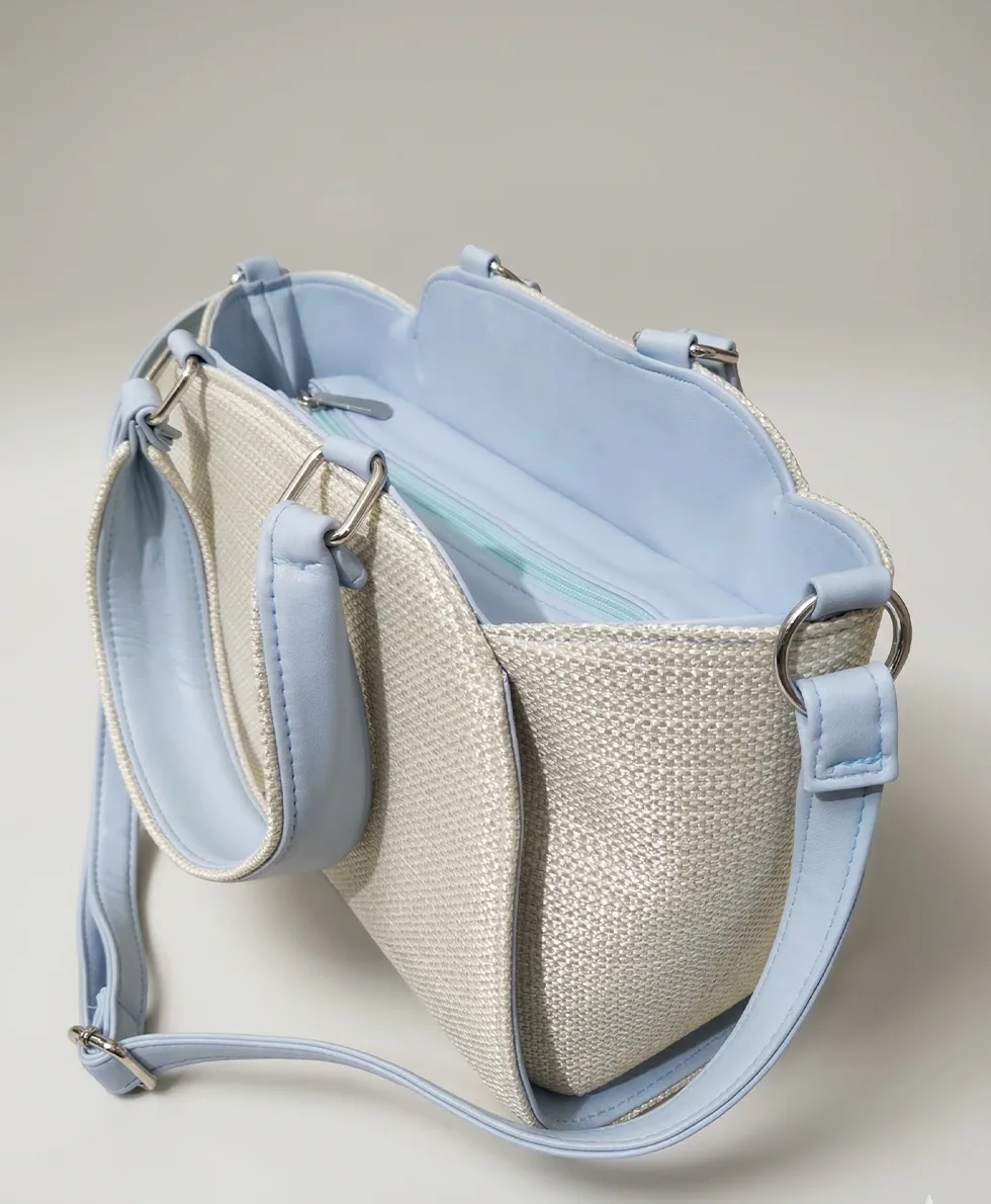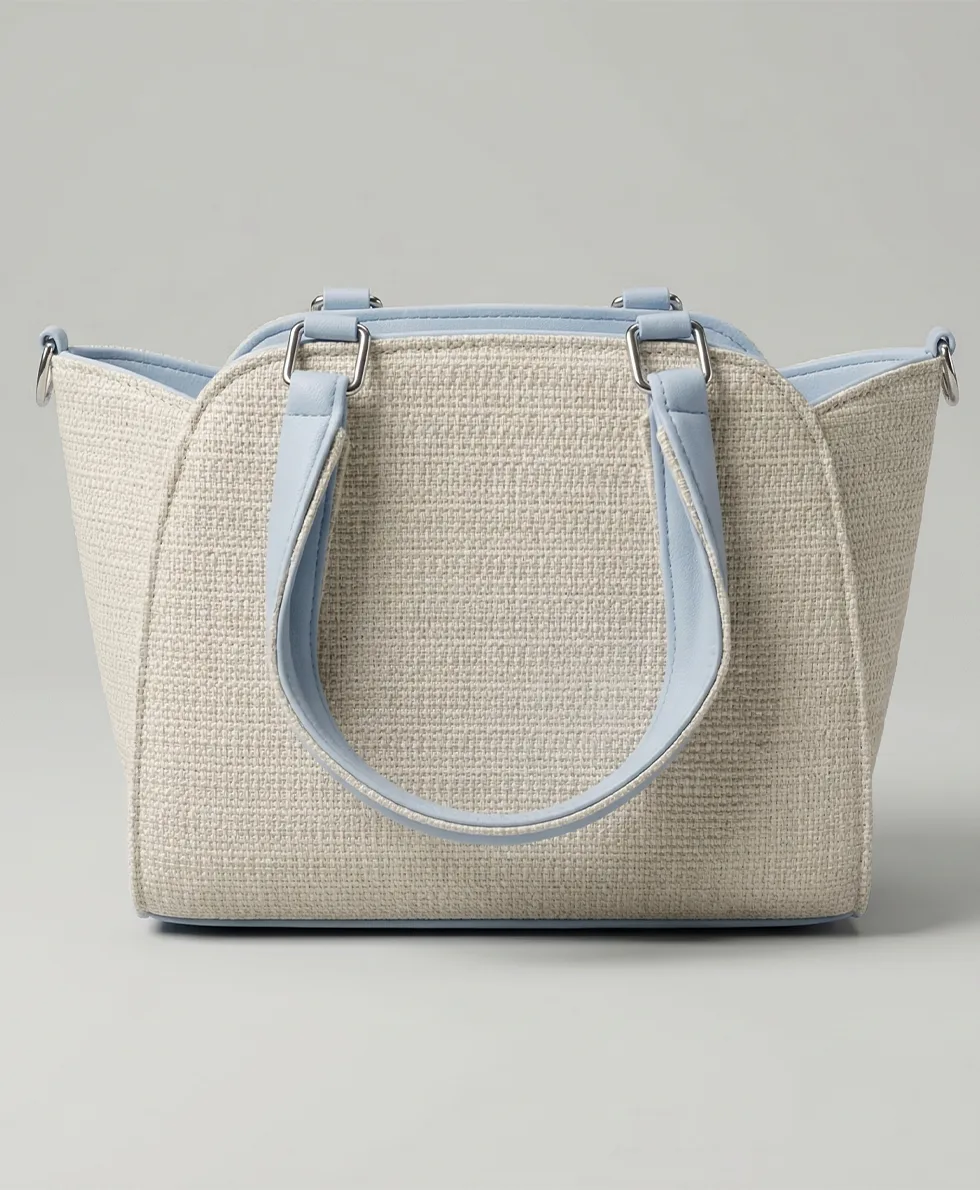 Handcrafted jute handbag in premium textured canvas, designed for modern Pakistani women. Neutral tones work seamlessly with eastern and western wardrobes. Dual carrying options—structured top handles or removable shoulder strap suit any occasion from office to weddings. Built-to-last construction maintains its refined silhouette through daily wear.