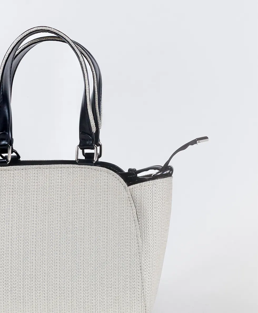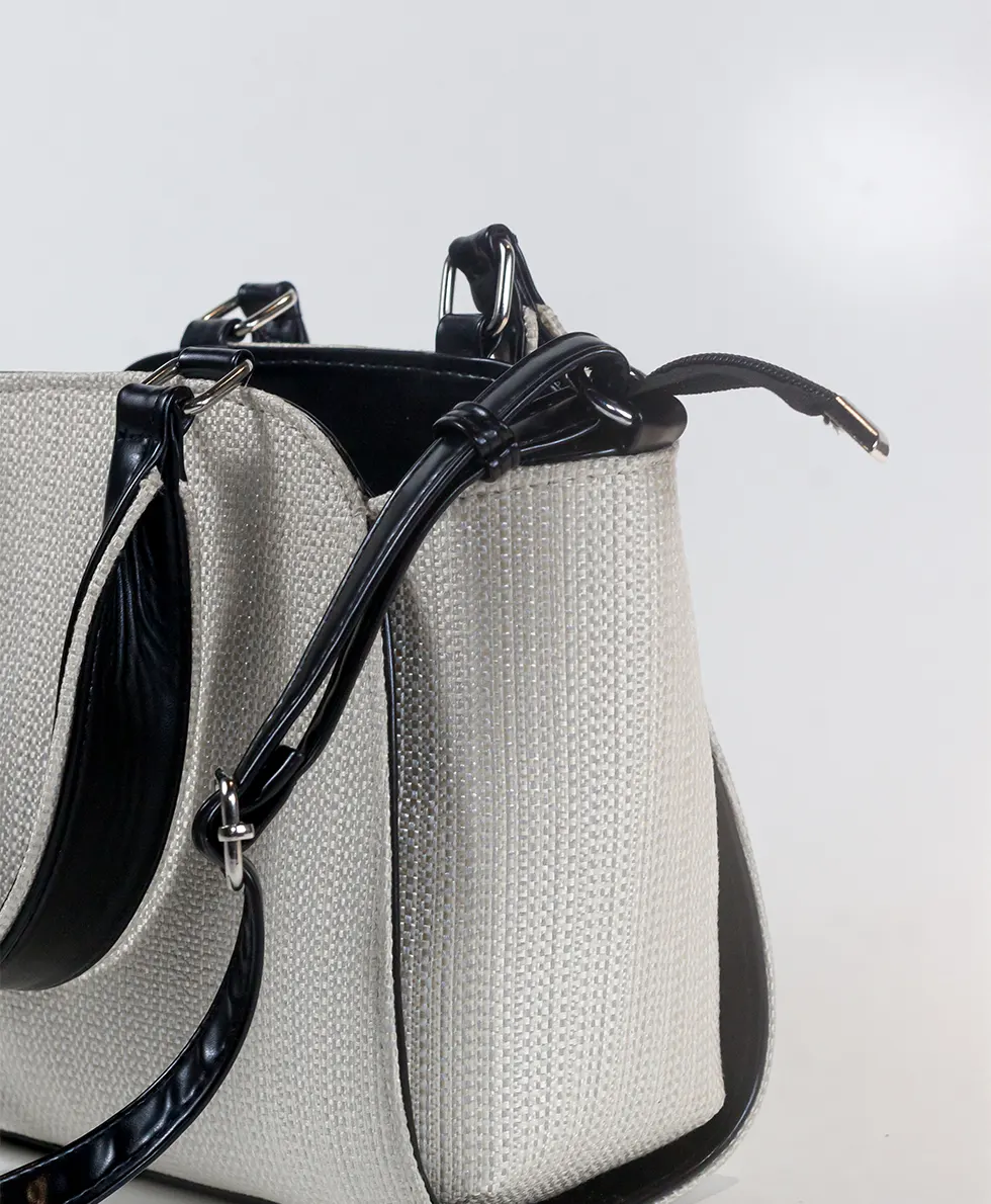 Handcrafted jute handbag in premium textured canvas, designed for modern Pakistani women. Neutral tones work seamlessly with eastern and western wardrobes. Dual carrying options—structured top handles or removable shoulder strap suit any occasion from office to weddings. Built-to-last construction maintains its refined silhouette through daily wear.
